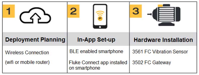 Easy in-app setup and sensor installation. Planning the deployment in advance with wireless connection and asset information ensures successful setup.